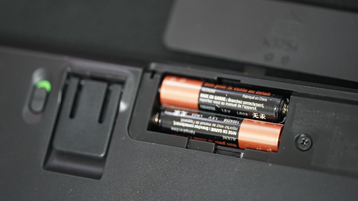 건전지 케이스는 뒷면 상단에 있습니다. 동봉된 건전지를 색깔만 보고 듀라셀로 착각했다는... 당연히 그럴리가 없죠.